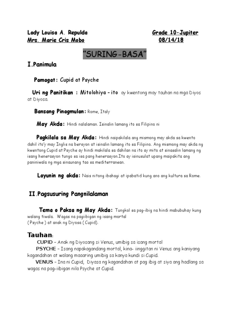 Suring basa ng cupid and psyche. Filipino 28102019 1628 lhadyclaire. Suring basa Isinulat ni jolina n. The tale concerns the overcoming of obstacles to the love between Psyche ˈ s aɪ k iː.